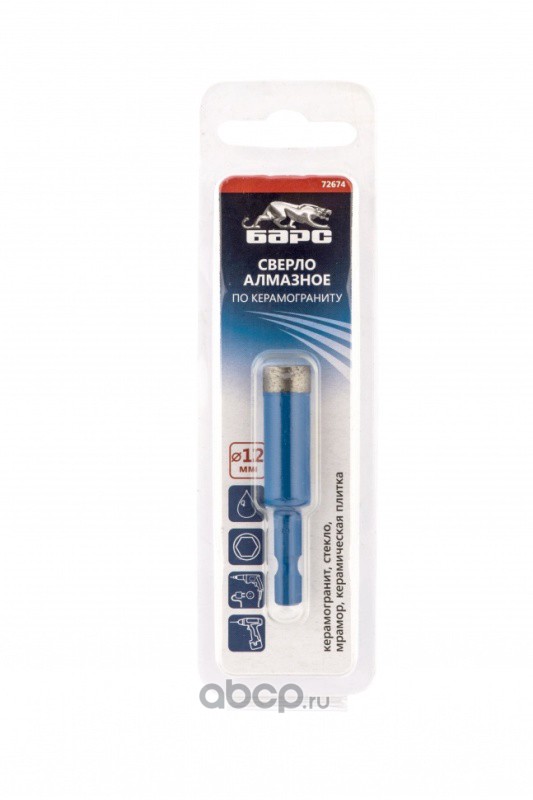 Сверло алмазное по керамограниту, 12 х 35 мм, шестигранный хвостовик Барс