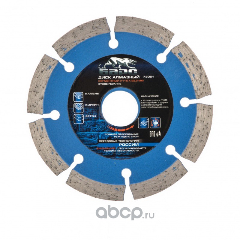 Диск алмазный, сегментный 115 х 22.2 мм, сухая резка Барс