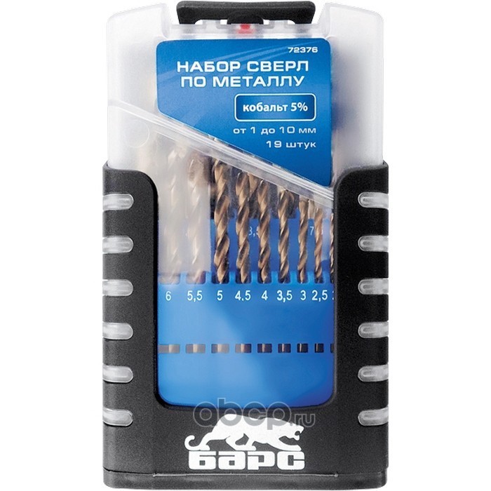 Набор сверл по металлу, 1-10 мм (через 0.5 мм), 19 шт, Р6М5, многогранная заточка, бокс Барс