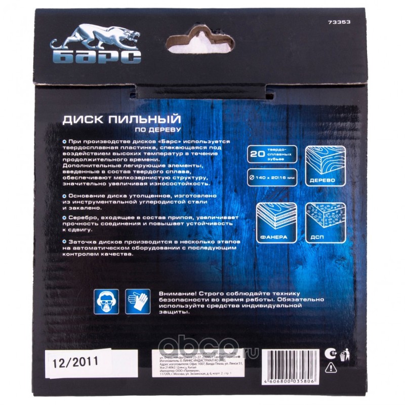 Пильный диск по дереву 140 x 20/16 мм, 20 твердосплавных зубъев Барс