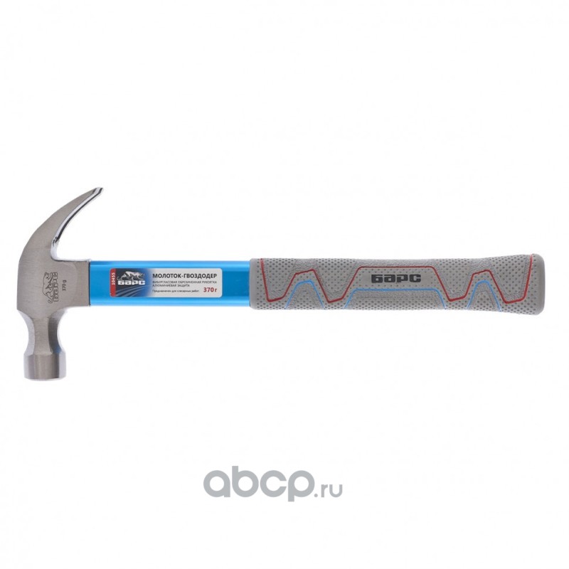 Молоток-гвоздодер 370 г, фибергласовая обрезиненная рукоятка, алюминиевая защита Барс