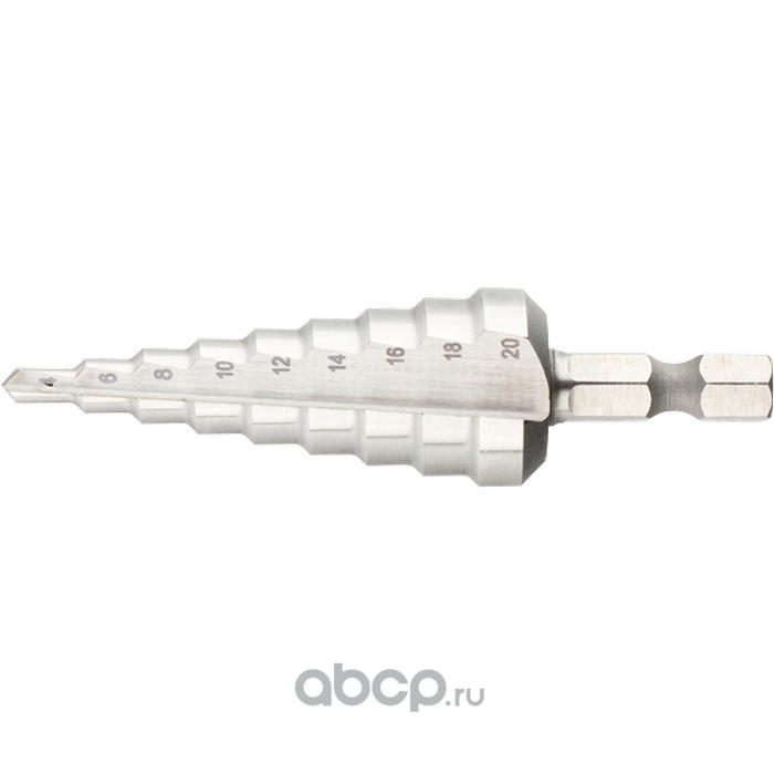 Сверло ступенчатое по металлу 4-6-8-10-12-14-16-18-20 мм, Р6М5, шестигранный хвостовик Барс