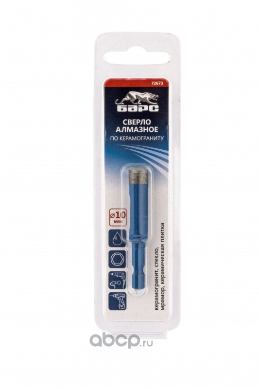 Сверло алмазное по керамограниту, 10 х 35 мм, шестигранный хвостовик Барс