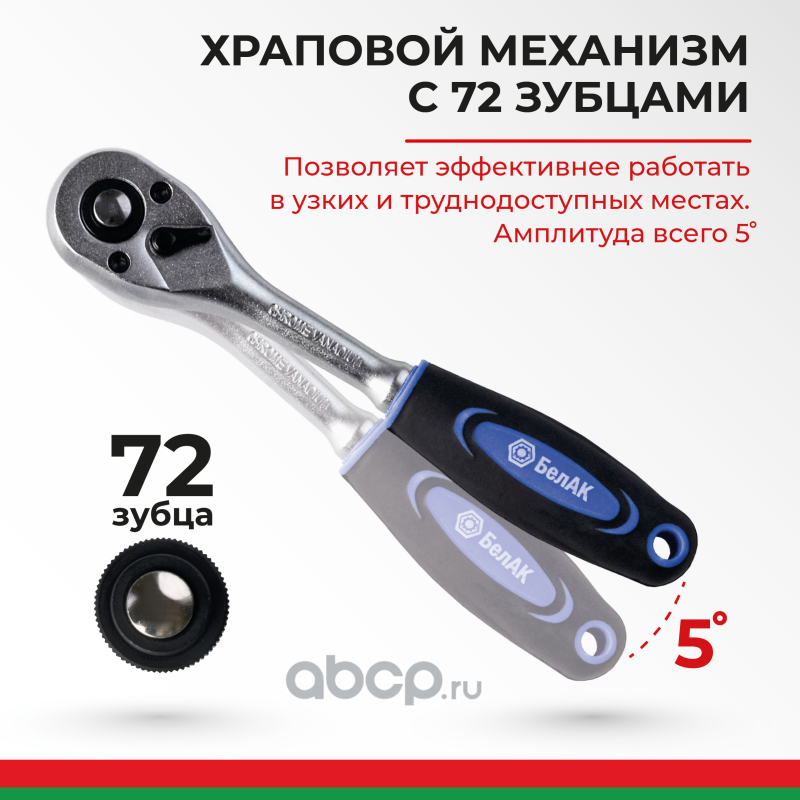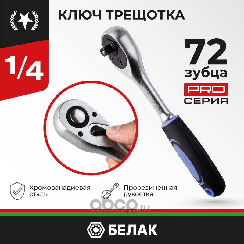 | БелАК | БАК08002 | Ключ трещотка серии Профи 1/4 72 зуб. | ||