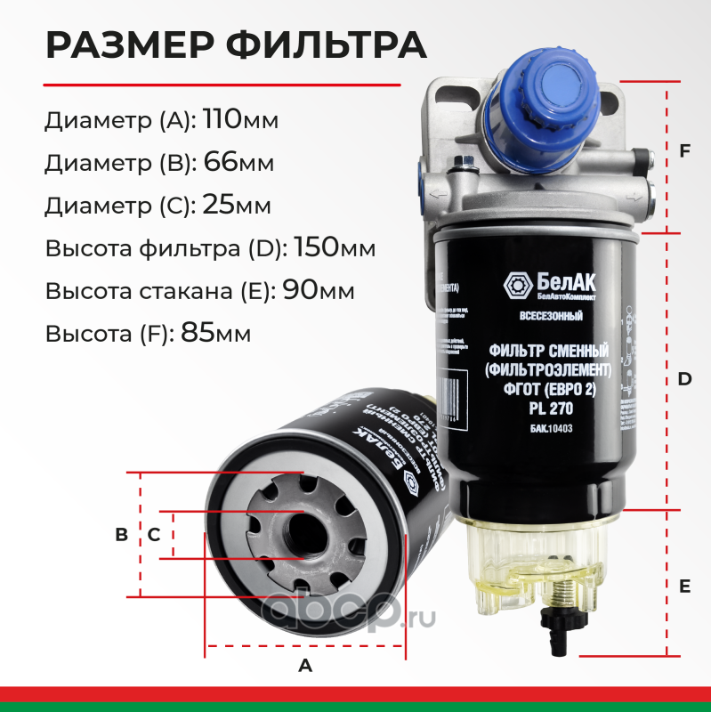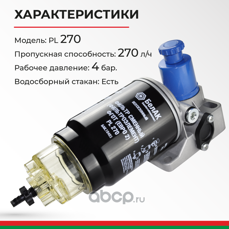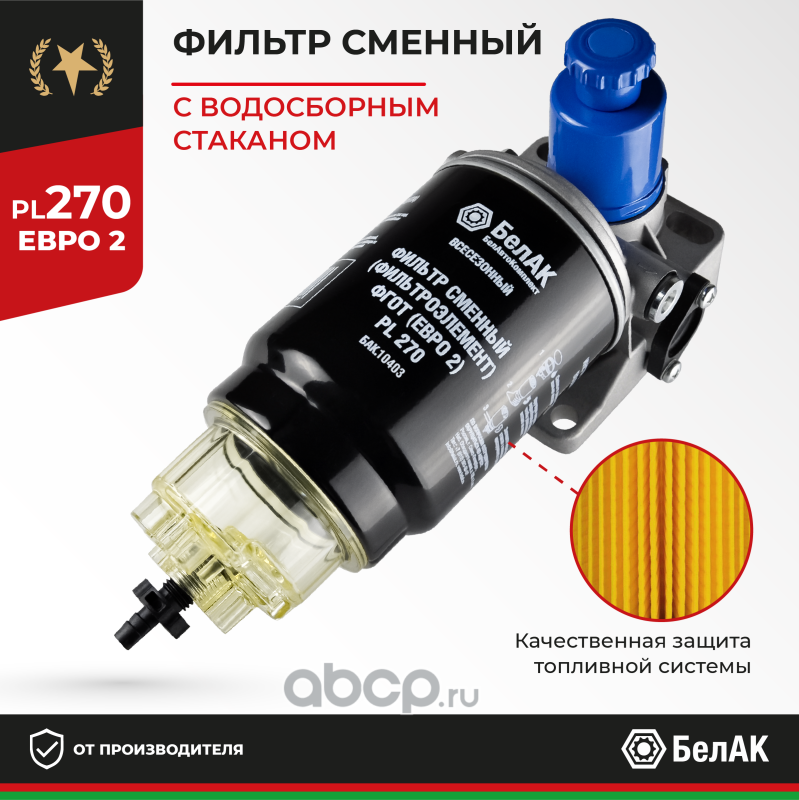 | БелАК | БАК10403 | Фильтр топливный грубой очистки (ФГОТ) PL 270 Н/О в сб. Евро-2 | ||