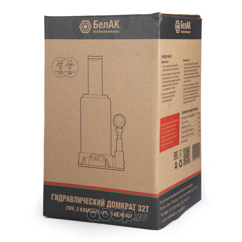| БелАК | БАК00037 | Домкрат гидравлический (TUV, 2 клапана) 32 т. БелАК | ||