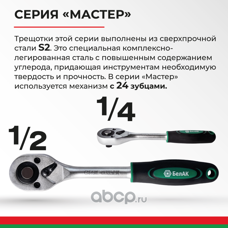 | БелАК | БАК08003 | Ключ трещотка серии Мастер 1/2 24зуб. | ||