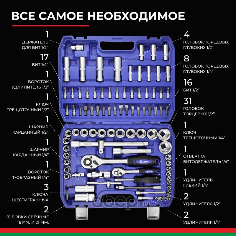 | БелАК | БАК07002 | Набор инструментов 94 предмета "ПРОФИ" | ||
