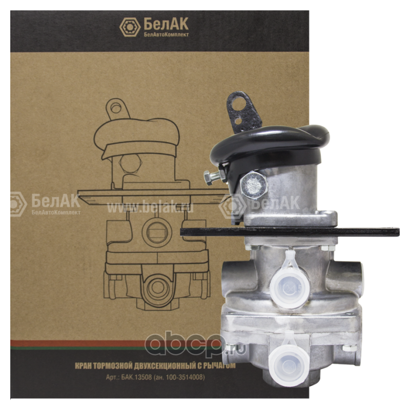 | БелАК | БАК13508 | Кран тормозной двухсекционный с рычагом (ГТК) (ан.100-3514008) БелАК | ||