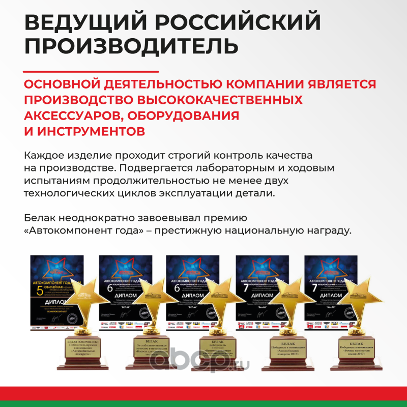 Компания «БелАвтоКомплект» - производитель автозапчастей, аксессуаров и дополнительного оборудования для автомобилей российского производства. Товары марки «БелАК» продаются в семидесяти пяти регионах и ста городах России.