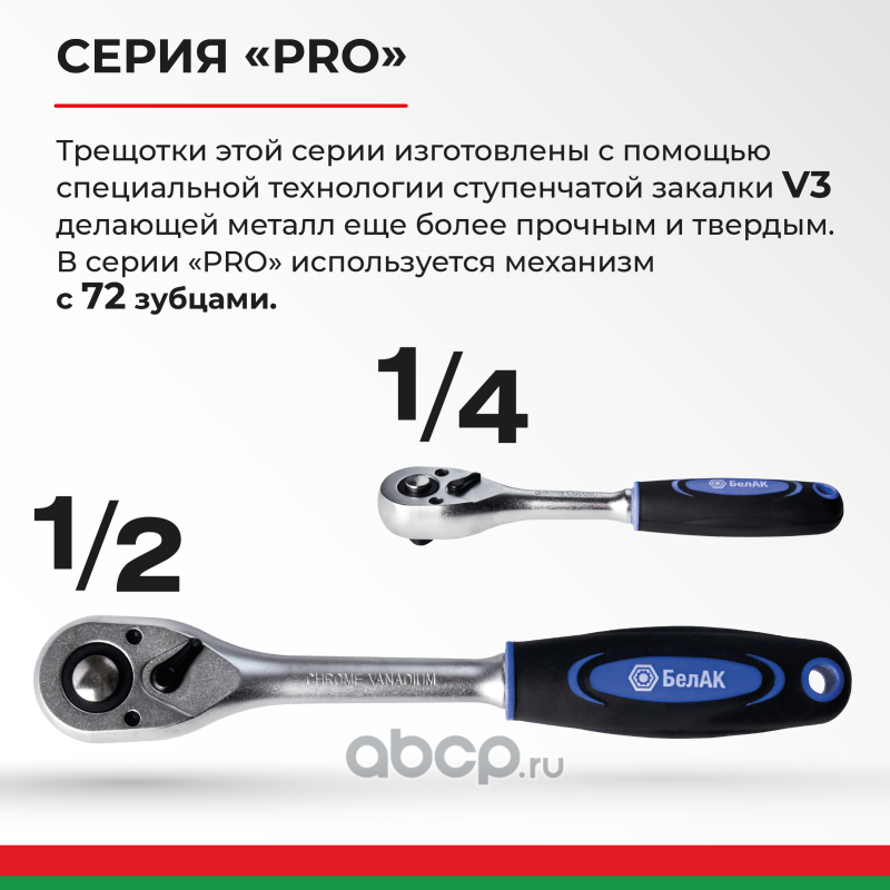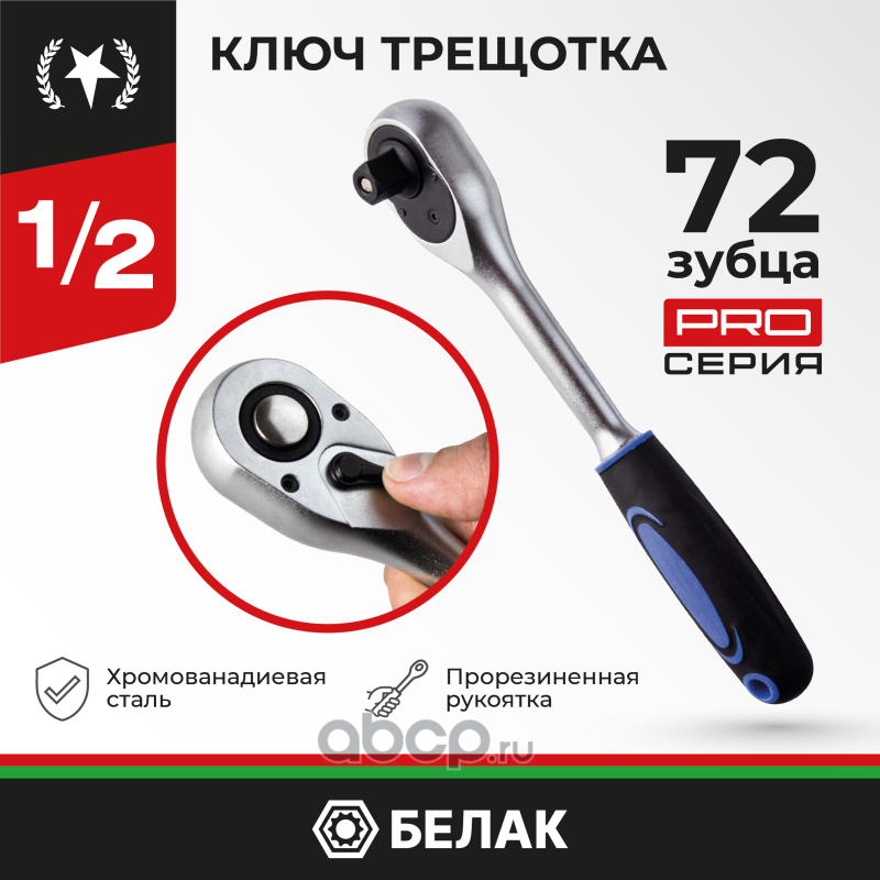 | БелАК | БАК08001 | Ключ трещотка серии Профи 1/2 72зуб. | ||