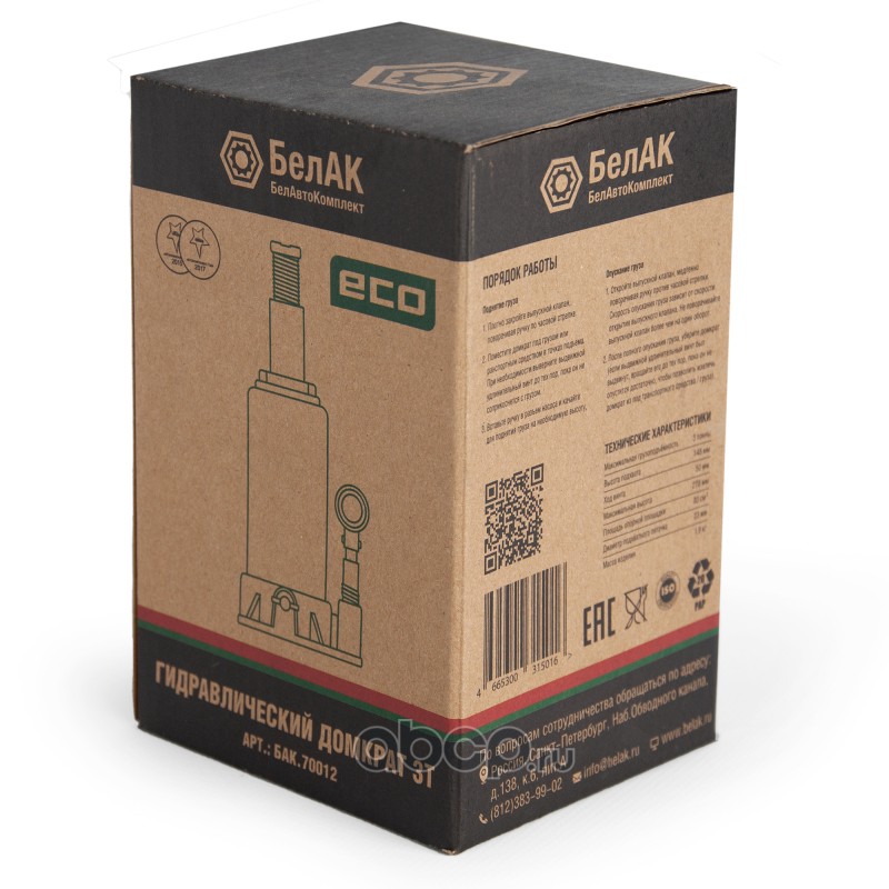 | БелАК | БАК70012 | Домкрат гидравлический ECO 3 т. БелАK |