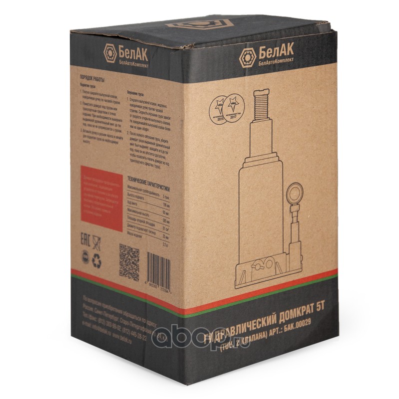 | БелАК | БАК00029 | Домкрат гидравлический (TUV, 2 клапана) 5 т. БелАК | ||