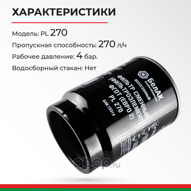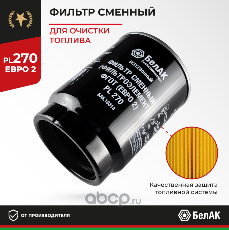 | БелАК | БАК10314 | Фильтр сменный(фильтроэлемент) ФГОТ (Евро 2) PL 270 | ||