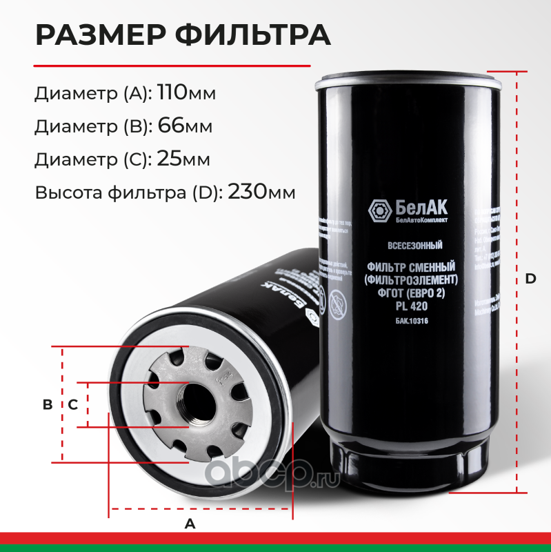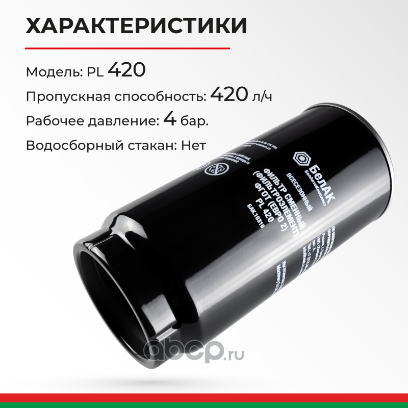 | БелАК | БАК10316 | Фильтр сменный(фильтроэлемент) ФГОТ (Евро 2) PL 420 | ||