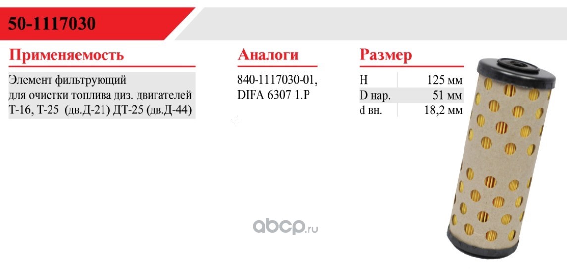 | БелТИЗ | 501117030 | Фильтр топливный | ||