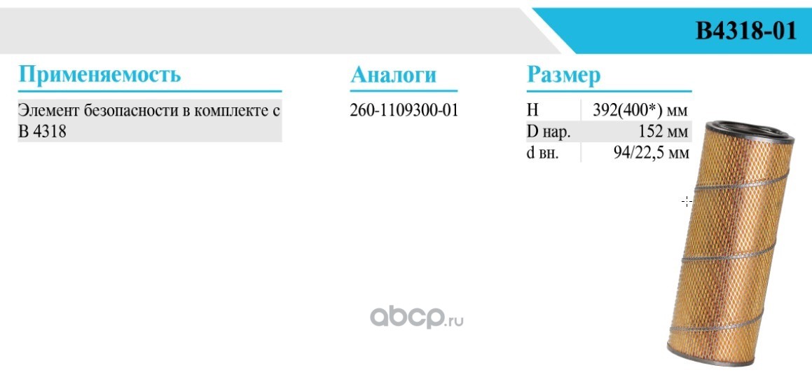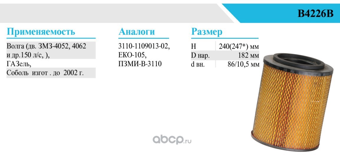| БелТИЗ | В4226В | Фильтр воздушный |