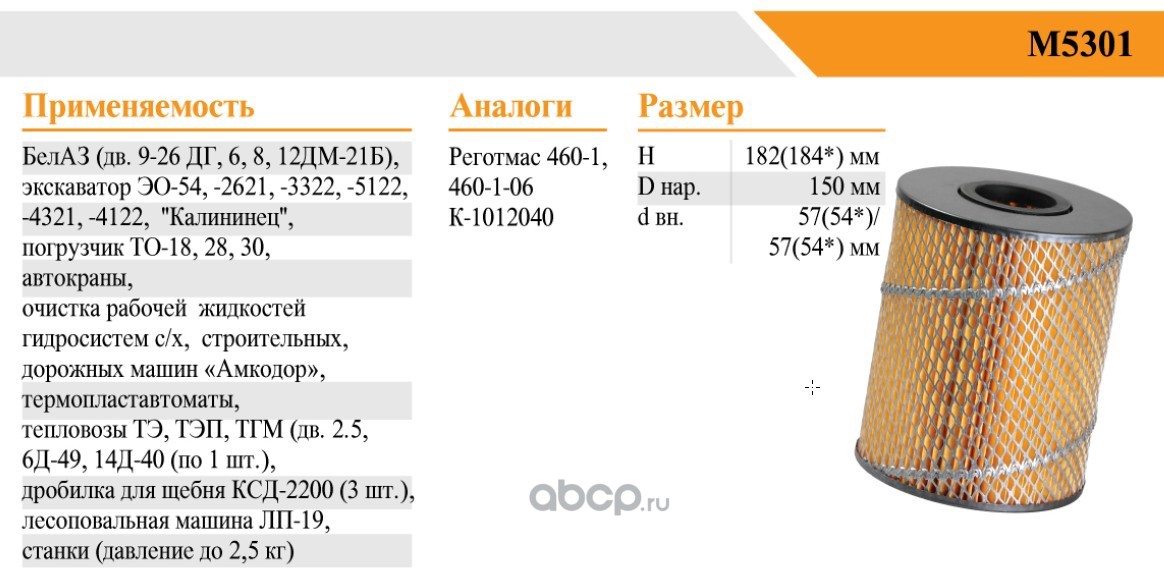 | БелТИЗ | М5301 | Фильтр гидравлический | ||