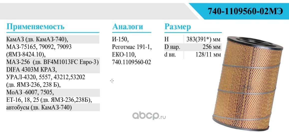 | БелТИЗ | 740110956002МЭ | Элемент фильтрующий очистки воздуха | ||