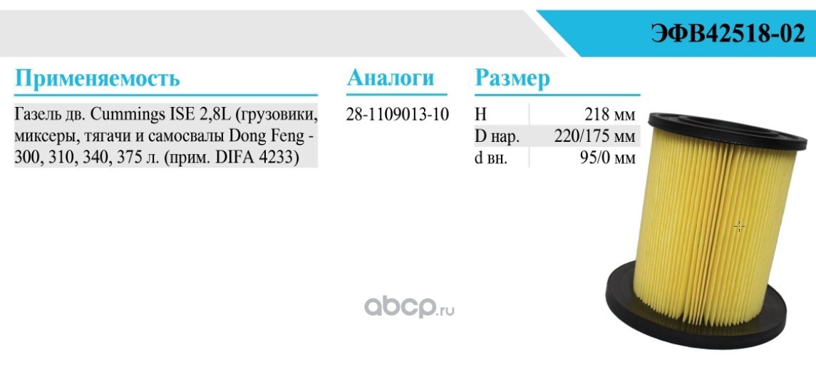 | БелТИЗ | ЭФВ4251802 | Фильтр воздушный | ||