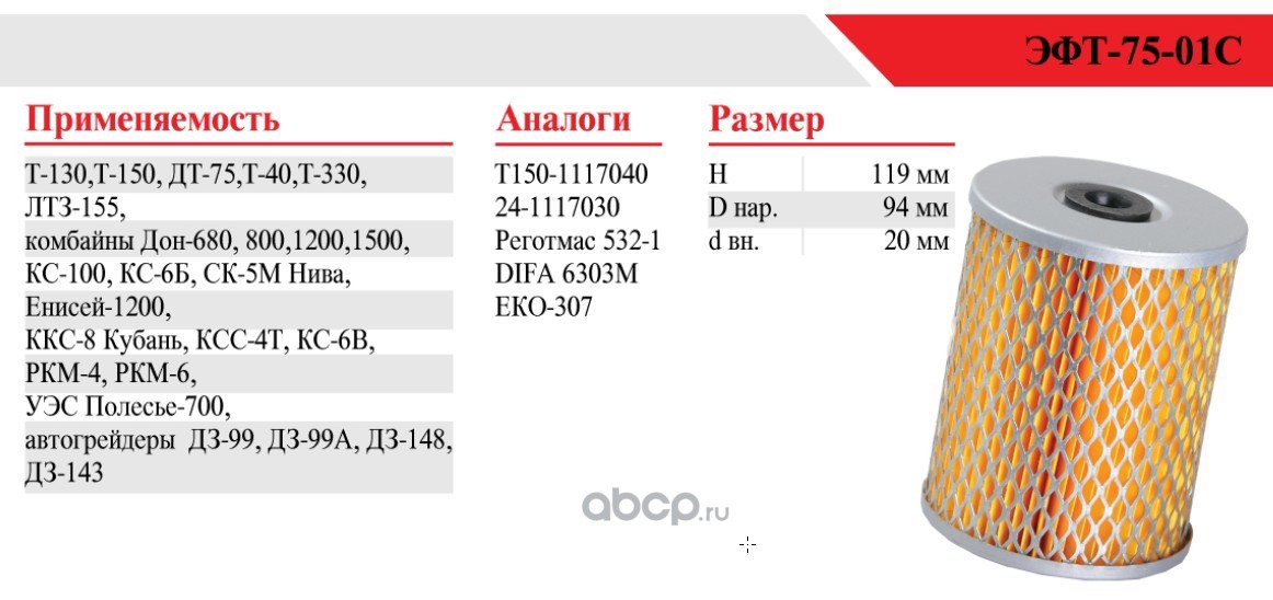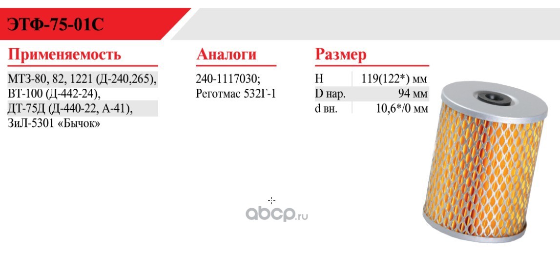 | БелТИЗ | ЭТФ7501С | Фильтр топливный | ||