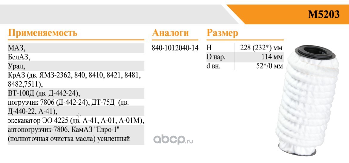 | БелТИЗ | М5203 | Фильтр масляный | ||