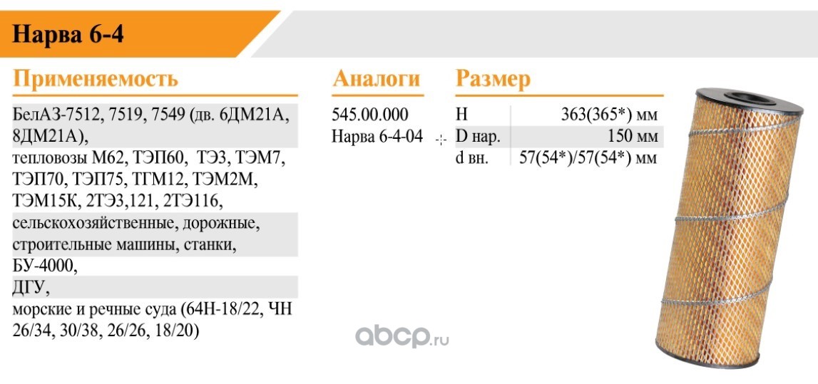 | БелТИЗ | НАРВА64 | Элемент фильтрующий очистки масла | ||