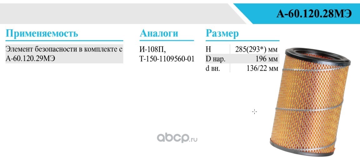 | БелТИЗ | А6012028МЭ | Фильтр воздушный |