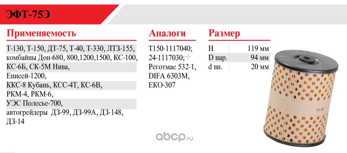 | БелТИЗ | ЭФТ75Э | Фильтр топливный | ||