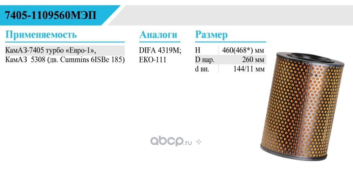 | БелТИЗ | 74051109560МЭП | Фильтр воздушный | ||
