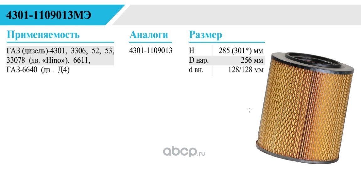 | БелТИЗ | 43011109013МЭ | Фильтр воздушный | ||