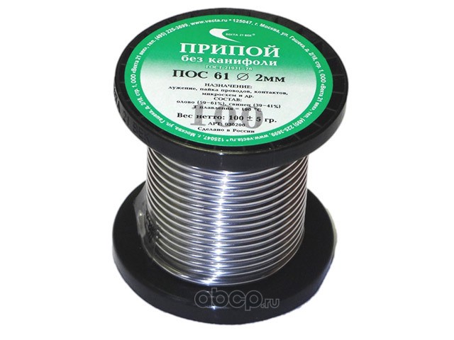 ВЕКТА 21 ВЕК 30200 Припой ПОС 61 проволока, катушка ф2мм (100г) (без канифоли)