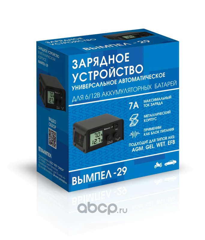 | ВЫМПЕЛ | 2029 | ЗУ Вымпел-29 (метал.корпус, автомат,0-7А,7.4-18В,ЖК индикатор) НПП Орион | ||
