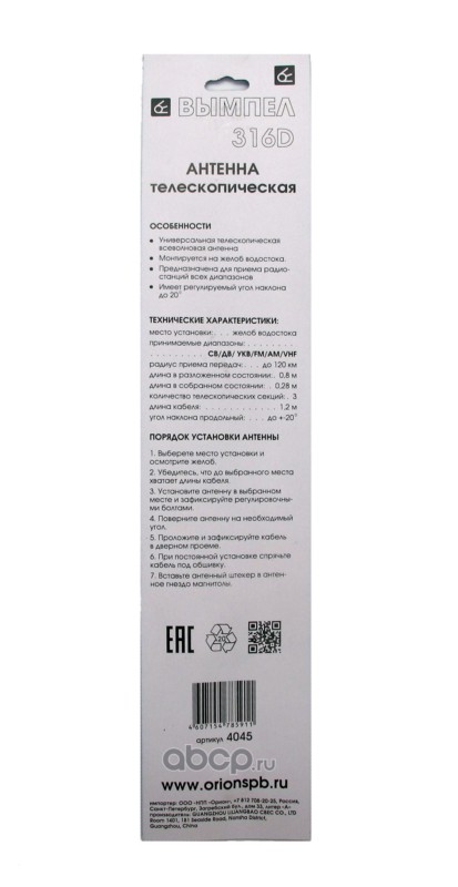 | ВЫМПЕЛ | 4045 | Антенна Вымпел 316D (на жёлоб, телескопическая, 80см) | ||