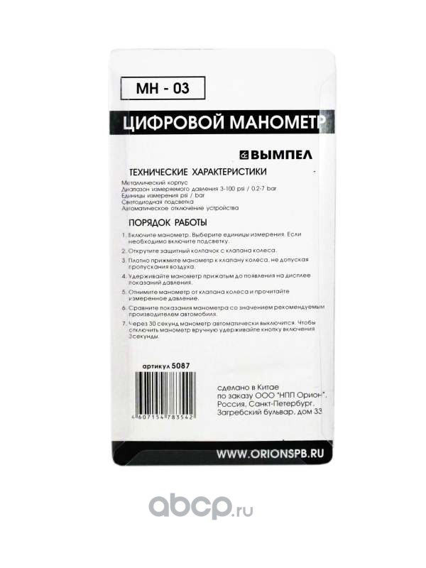 | ВЫМПЕЛ | 5087 | Цифровой манометр Вымпел МН-03 | ||