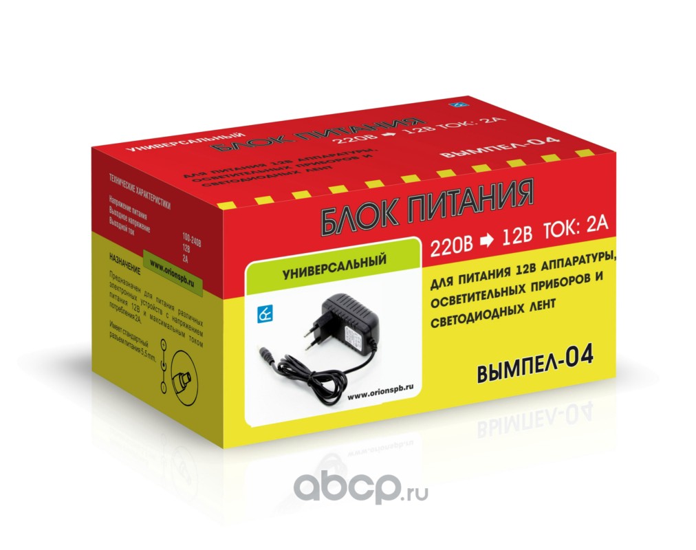 | ВЫМПЕЛ | 2052 | ЗУ Вымпел-04 (блок питания, 2А, 12В, разьем питания 5.5 мм) НПП Орион | ||