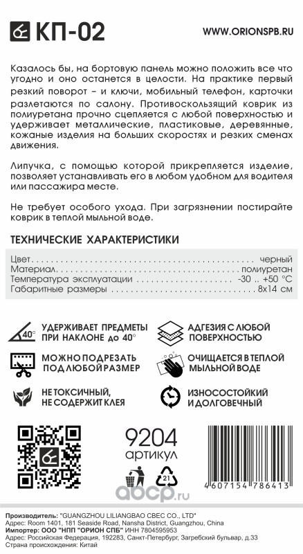 | ВЫМПЕЛ | 9204 | Коврик противоскользящий КП-02 (черный, 8*14 см) | ||