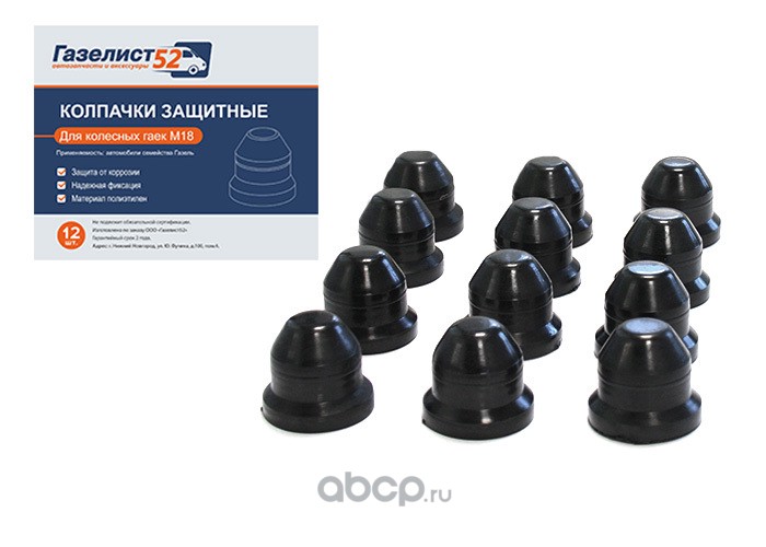| Газелист52 | GO9005001 | Колпачки на колёсные гайки М18 (черный) пласт. к-т 12шт. | ||