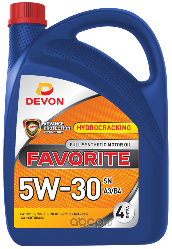 | ДЕВОН | 338663840 | Масло моторное синтетика ДЕВОН Favorite SN A3/B4 5W-30 4 л. | ||