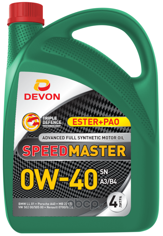 | ДЕВОН | 338663833 | Масло моторное синтетика ДЕВОН Speed Master 0W-40 4 л. | ||
