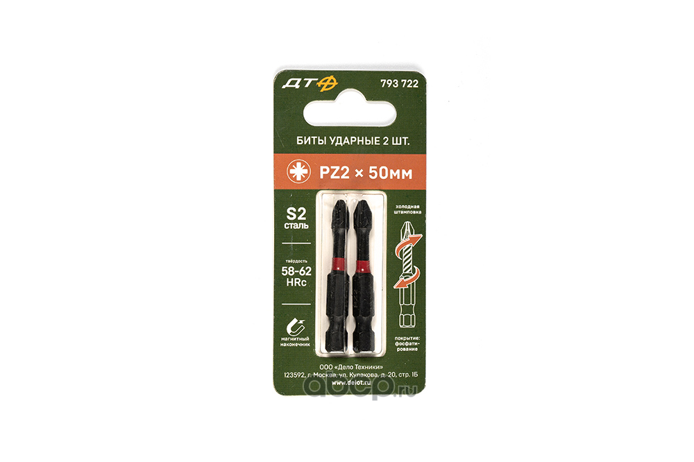 | Дело Техники | 793722 | Бита ударная 1/4'''', PZ2 × 50 мм, 2 шт. |