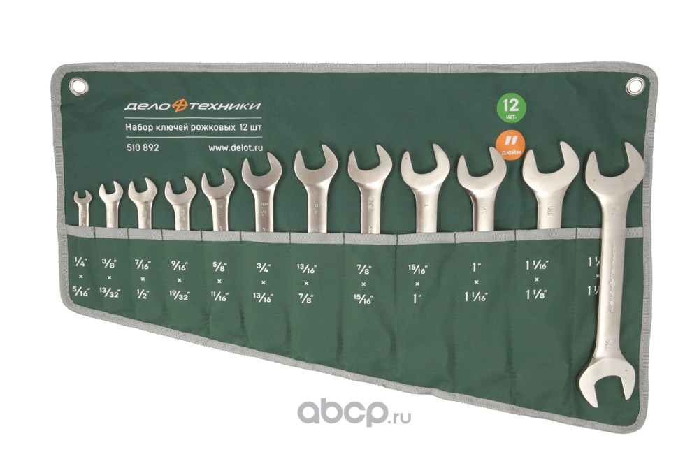 | Дело Техники | 510892 | Набор ключей рожковых дюймовых, 12 шт. планшет тетрон. |