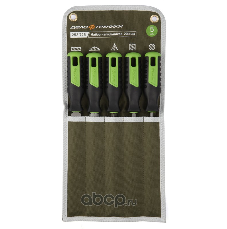 | Дело Техники | 253725 | Набор напильников №2 200 мм, 5 шт (плоский, полукруглый, трёхгранный, квадратный, круглый) | ||