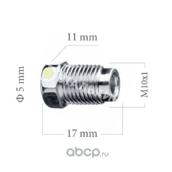| Деталькин | Z105 | Штуцер тормозной трубки M10x1 s11 L=17.5 | ||
