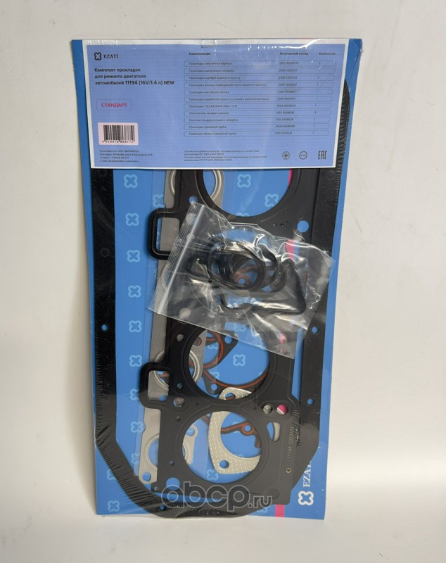 Комплект прокладок для ремонта двигателя ВАЗ 11194 (большой) (16V/1.4 л) СТАНДАРТ NEW