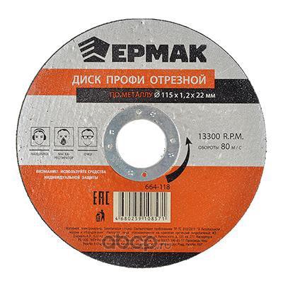 | ЕРМАК | 664118 | Круг отрезной по металлу 115*1,2*22 А54 | ||