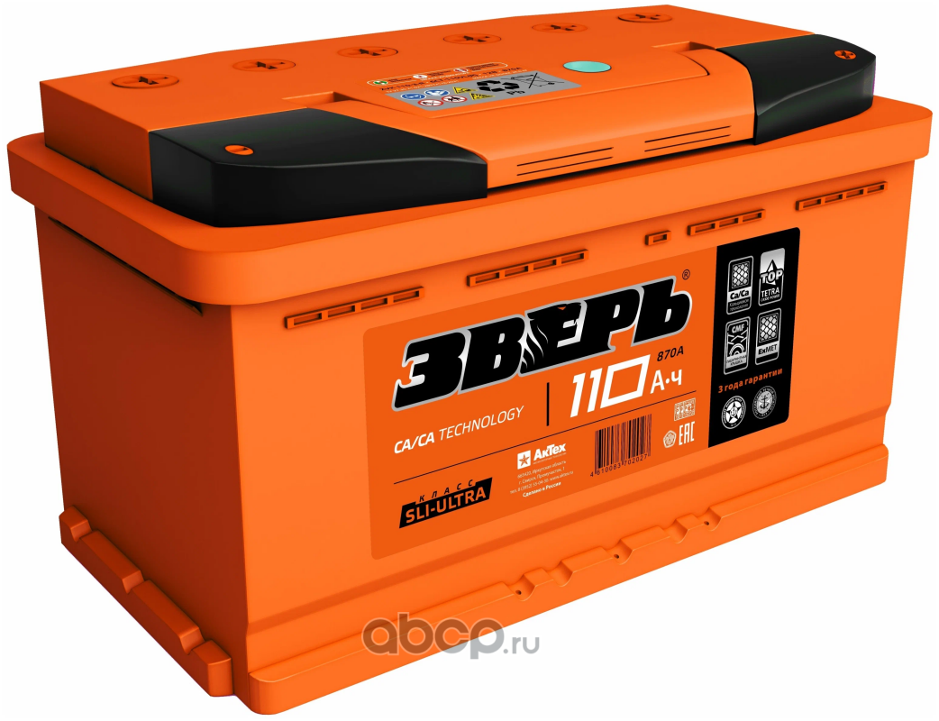 | ЗВЕРЬ | ZVK1103L | Батарея аккумуляторная 110А/ч 870А прямая полярн. стандартные (Европа) клеммы | ||