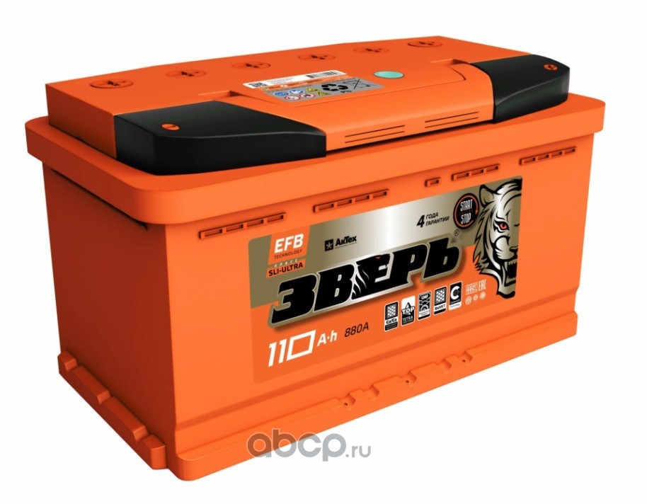 ЗВЕРЬ | ZVEFBA1103R | Батарея аккумуляторная 110А/ч 950А 12В обратная полярн. выносные (Азия) клеммы | |