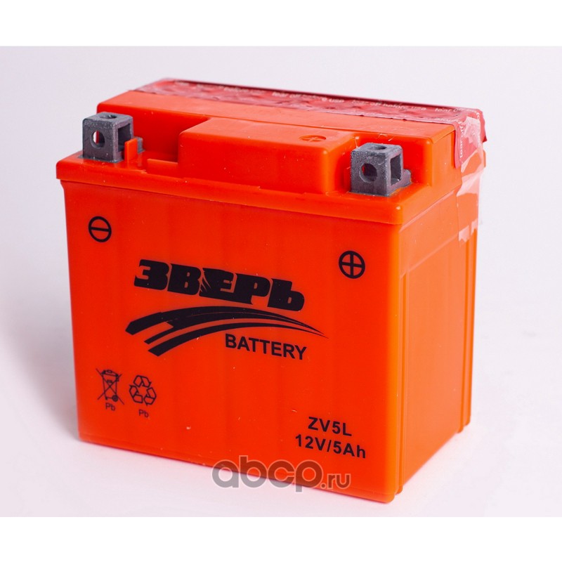 | ЗВЕРЬ | ZV5L | Батарея аккумуляторная 5А/ч 55А обратная полярн. болтовые мото клеммы | ||
