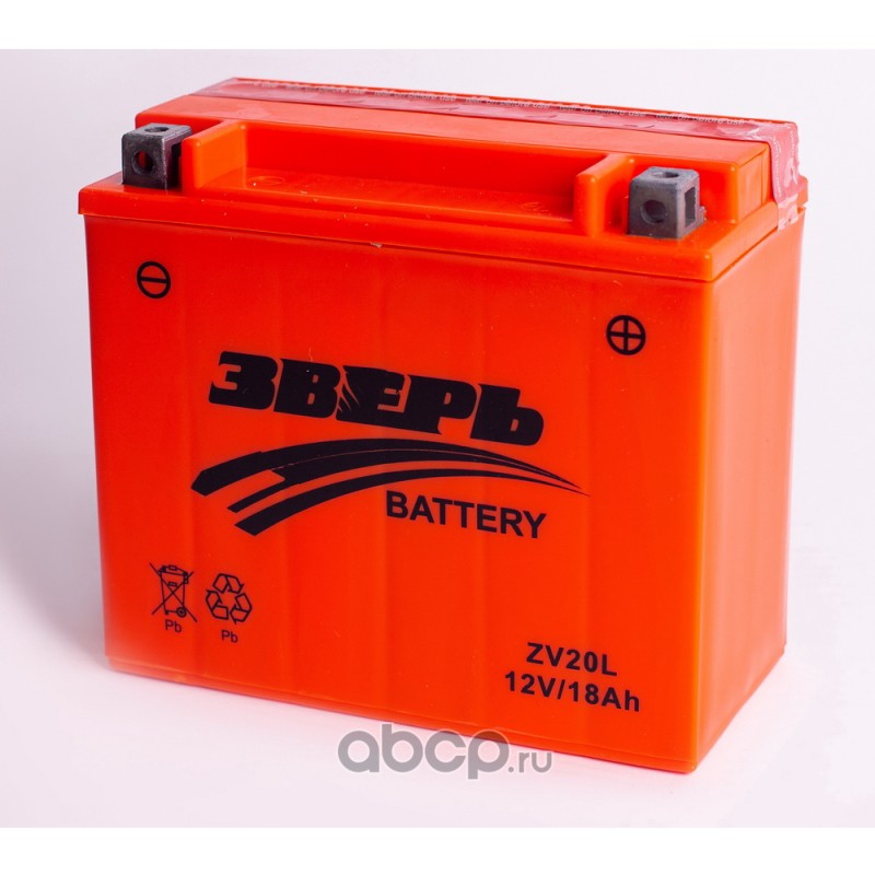 | ЗВЕРЬ | ZV20L | Батарея аккумуляторная 18А/ч 210А обратная полярн. болтовые мото клеммы | ||